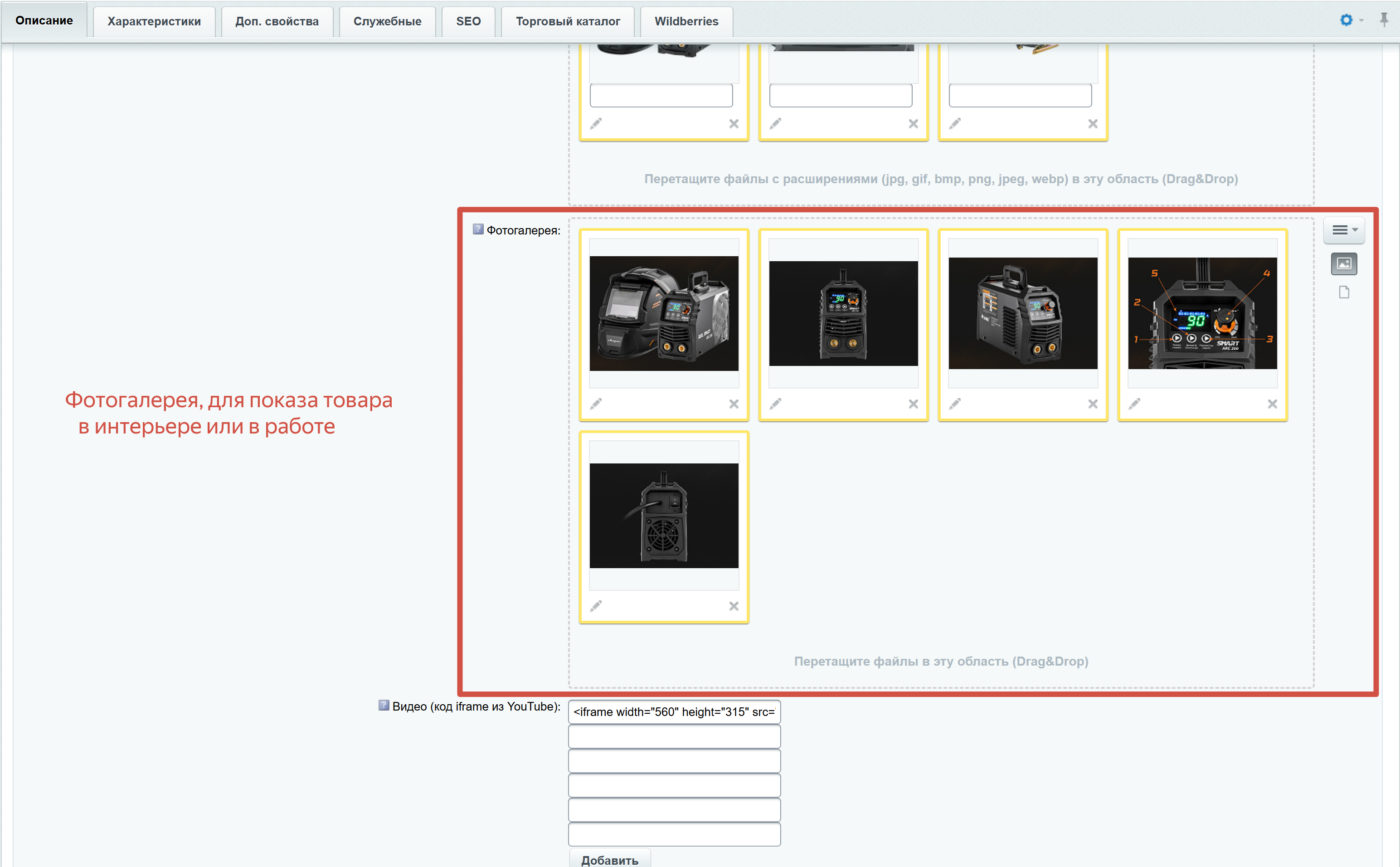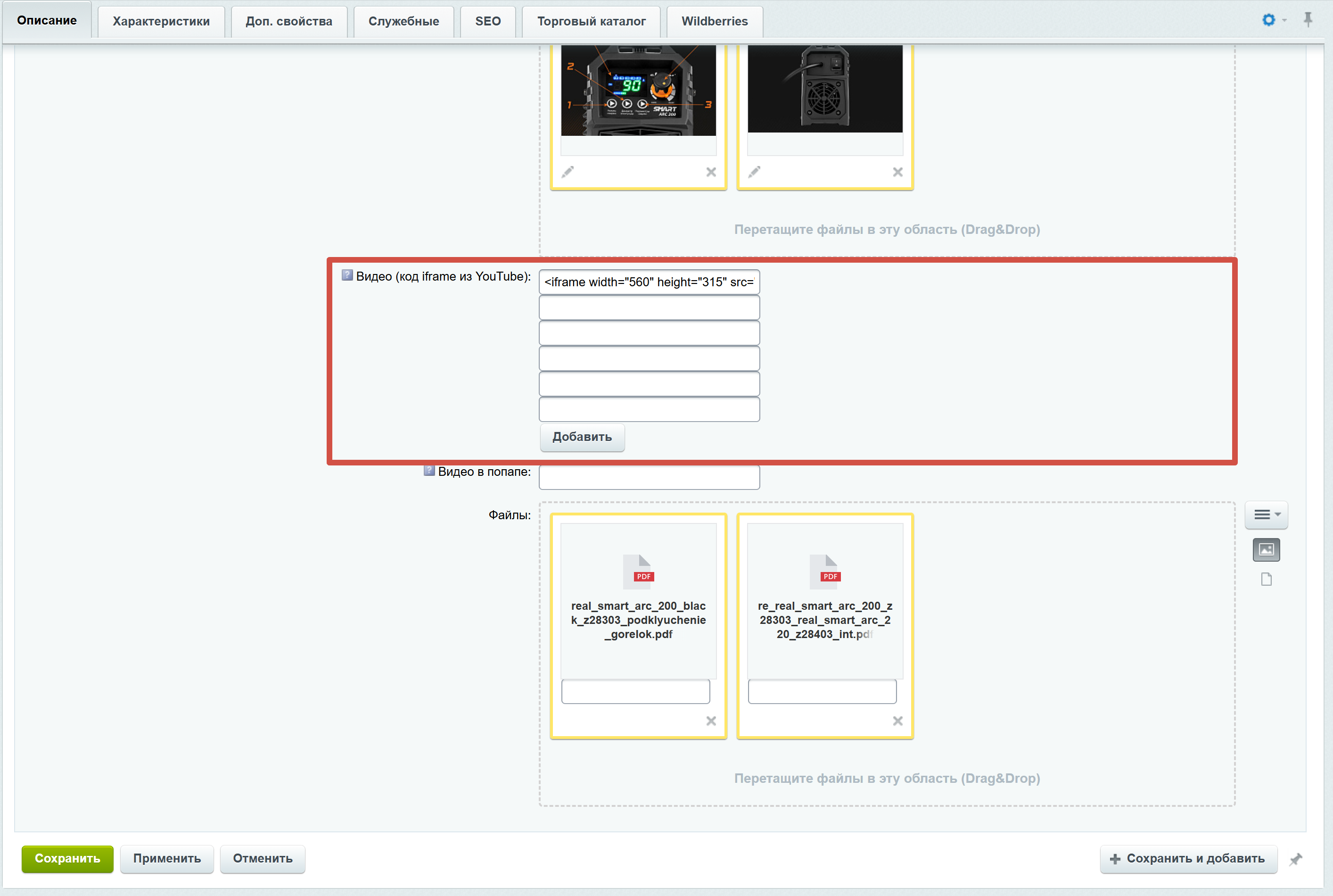 Если есть видеообзор на сайте производителя, то вставлять его необходимо в это поле.
