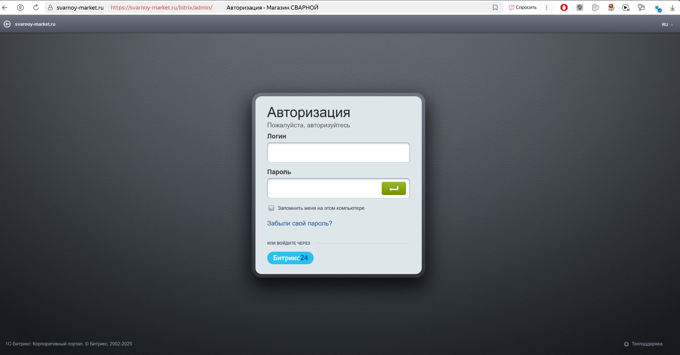 Заходим в админ-панель по адресу: https://svarnoy-market.ru/bitrix/admin под своими учётными данными